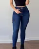 jeans women's fashion Zipper Fly Flap Pocket Side casual Skinny Jeans 2021