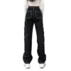 Autumn Women Casual Straight Wide Leg Jeans Trendy Stitching High Waist Relaxed Fit Denim Pants with Pockets