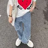 Wide Leg Loose Jeans Women High Rise Baggy Jeans Ladies 2021 Fashion Streetwear Dark Blue Heart Denim Pants Pocket Girl Trousers
