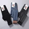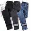 Elastic Plush jeans women's net red high waist tight and thin large autumn and winter student nine point small leg pencil pants