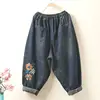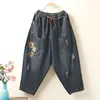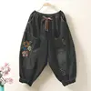 European Station 2022 Washed Denim Wide-leg Suspender Pants Women's Loose Baggy Pants Flower White Cover Meat Harlan Autumn Old