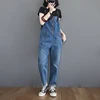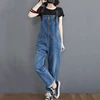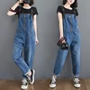 Vintage High Waist Denim Overalls Women Spring Streetwear Straps Jeans Jumpsuit Femme Loose Blue Rompers Zipper Suspender Pants
