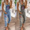 2021 European and American new women's sexy slim suspenders printed wash jeans sexy ripped jeans for women distressed jeans