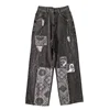 Street hip hop womens plus size jeans handsome retro womens high waist wide leg pants jeans BF loose wild straight leg jean 2021