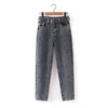 2021 fashion women mom jeans pants with belt long trousers strethy waist pockets zipper female pants