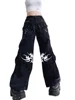 WeiYao Eyelet Buckle Black Punk Goth Jean Fashion Woman Techwear Dark Academic Print Egirl Cargo Pants High Waist Denim Trousers