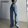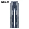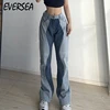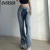 Eversea Color Matching Jeans Ins Hot Girl High Waist Drape With Long Legs Straight Casual Trousers