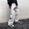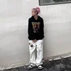 Streetwear Fashion Jeans Women's Autumn 2021 New White Leopard Letters High Waist Loose Straight Denim Pants Female