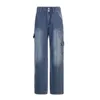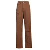 Vintage Brown Wide Leg Cargo Jeans High Waist Big Pockets Baggy Denim Trousers Casual Woman Jeans Streetwear Gothic Clothes