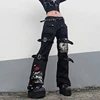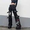 Women Streetwear Punk Style Skull Print Buckle Gothic Dark Cargo Pants Harajuku High Waist Aesthetic Straight Denim Trousers
