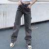 Sunny y.j. Baggy Grey Cargo Jeans Women Streetwear Vintage High Waist Jeans Y2K Boyfriend Mom Straight Leg Trousers Grunge Pants