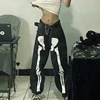 Black Goth Skeleton Jeans Women Baggy Hippie Streetwear Dark Academia Low Rise Goth Jeans Wide Leg Trousers Bell Bottom