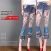 Autumn and Winter 2021 Heavy Industry Western Style Printed Flared Pants Women's High Waist Slim Slimming Sag Micro Flared Pants