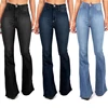 Solid Color Women Flared Jeans High Waist Full Length Ladies Jeans Washed Slim Slimming Bootcut Trousers Causal Mom Pants 6159