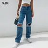 Y2K High Waist Women's Cotton Ripped Denim Jeans Straight Streetwear Wide Leg Pants Casual Loose Trousers Woman Classic Pants