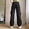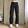 autumn fashion new women pants street black Black Cargo Jeans Ruched Pockets Trousers Punk Fashion Low Waisted Korean Jeans