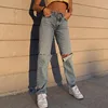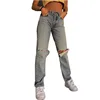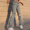 New Ripped Women Cargo Jeans Straight Leg Long Pants Ladies Light Blue Jeans Fashion Loose High Waist Vintage Baggy Denim Pants