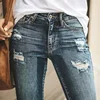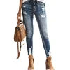 Women Jeans Ripped High Waisted Straight Skinny Stretchy Pants Streetwear Ladies Hole Washed Bandage Denim Pencil Pants Trousers