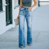 Women Blue Denim Trouser Wide Leg Straight Full Length Mid Waist Casual Ripped Skinny Jean Pantalones De Mesclilla Para Mujer