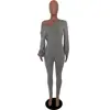 Casual Autumn Jumpsuit Front Zipper Long Sleeve bodysuit Solid Color Long playsuit overalls for women