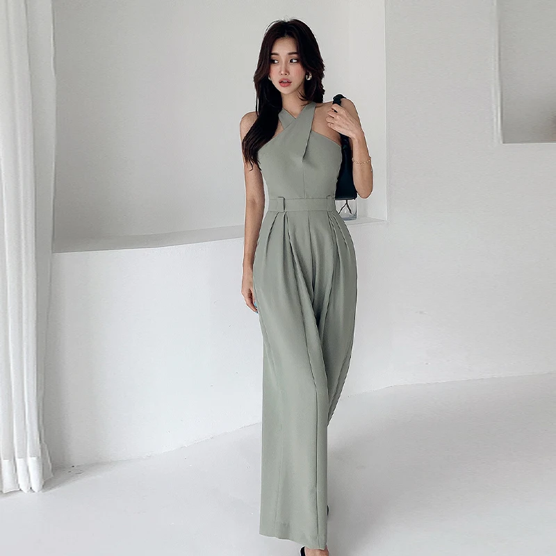 Summer New Women Jumpsuits Sexy Backless Rompers Female Solid Wide Leg Office Lady Playsuits