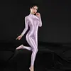 Sexy Women Full Body Bodysuit High Elasitc Clubwear Sheer Smooth Pants Oil Gloosy Sexy Tight Shaping Candy Color F37