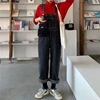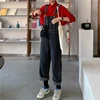 Women's Denim Jumpsuits Retro Denim Trousers Loose Solid Color Overalls Female Korean Student Style 2021 Woman Street Jeans