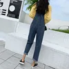 Denim Bib Pant Female Jumpsuit Women Clothing 2020 College Style Overalls Female Nine Point Straight Loose Korean Jeans Are Thin