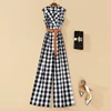 Rompers High Quality Summer New Fashion Women'S Party Elegant Vintage Office Casual Belt Plaid Trousers Lapel Vest Jumpsuits