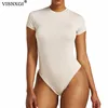 VISNXGI Bodysuits For Women Short Sleeve Knitted Skinny Autumn White Black Casual Body Top Jumpsuit Club Polyester Streetwear