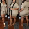 Women Plus Size 4xl 5xl Playsuits Turn Down Collar Single Breasted Bodycon Short Elegant Fashion High Street Rompers & Jumpsuits