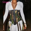 Adogirl 2021 Spring New Zipper Camo Waistband Jumpsuit Lucky Label Embroidery Solid Jumpsuit Waist Shape Belt Corset Romper
