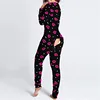 Valentine's Day Sleepwear Jumpsuit Long Sleeve Butt Flap Romper Women V-neck Heart Lip Bodycon Rompers Overalls