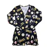 Women's Fashion V-neck High Waist Playsuit Casual Pattern Printing Buttoned Flap Romper Long Sleeve Short Pants Home Clothing