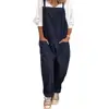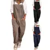 Women Casual Solid Color Sleeveless Pockets Long Pants Strap Jumpsuit Overall