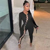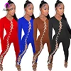 Fitness Women Rompers Sexy Knitted Long Sleeve Bodycon Jumpsuit Hollow Out Bandage One Piece Club Birthday Outfits Activewear