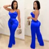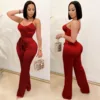 New Women Spaghetti Strap Sleeveless Straight Jumpsuit Women Sexy Club Open Back High Waist Rompers One Piece Overalls