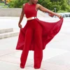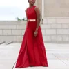 2021 New Red Jumpsuits For Women Floor Length Sleeveless High Waist Elegant Evening Night Party Dinner Rompers Jumpsuits No Belt