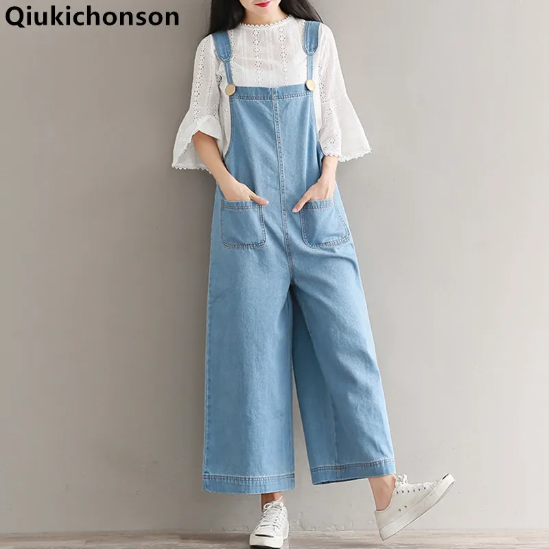 Qiukichonson Wide Leg Jumpsuit With Pockets Spring Summer Womens Rompers Plus Size Jumpsuits Mori Girl Denim Overalls 4XL 5XL