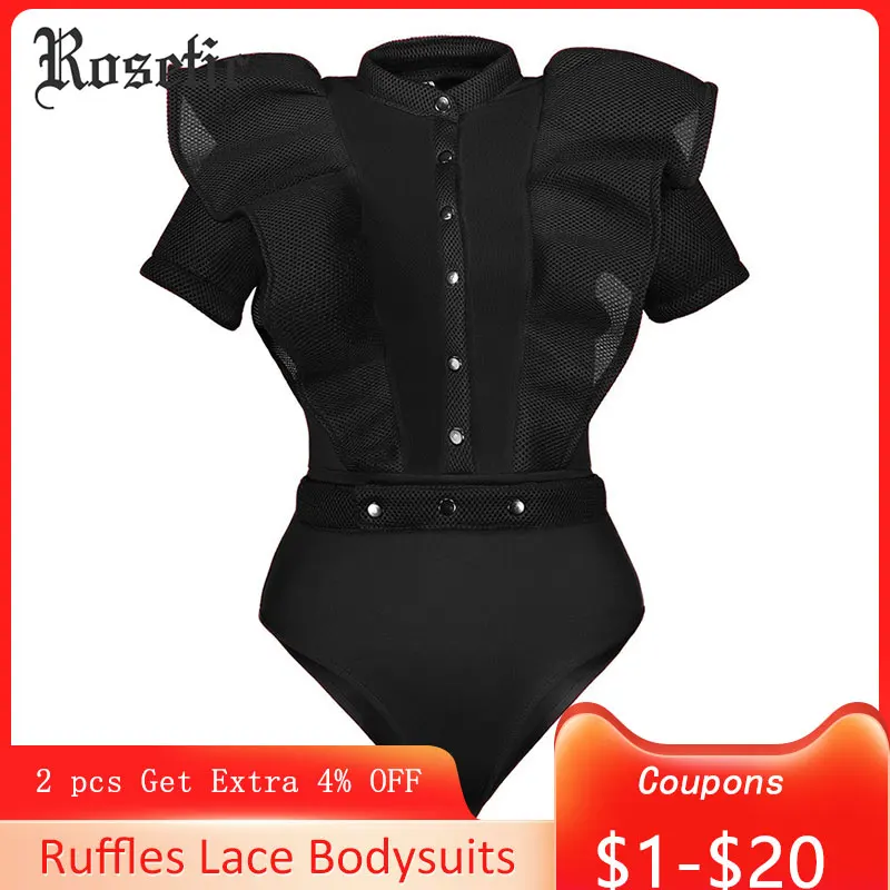 Rosetic Black Jumpsuits For Women Gothic Combinaison Femme Sexy Body Women One Piece Mesh Bodysuit Womens Clothing Romper