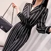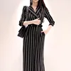 Summer Mid Waist Casual Turn-down Neck High Street Women Jumpsuits Black Three Quarter Sleeve Striped Print Sashes Work Jumpsuit