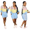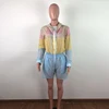 Casual Print Loose Women Playsuit Rompers Long Sleeve Turn Down Collar Zip Pocket Short Jumpsuit Sun Resistant Colorful Jumpsuit