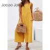 Jocoo Jolee Women Casual Loose Long Jumpsuit Solid Strap Wide Leg Jumpsuit Tie Up Backless Solid Color Vacation macacao feminino