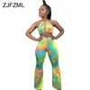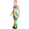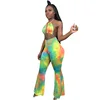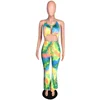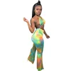 Tie Dyeing Print Rompers Women Jumpsuit Waist Band Cut Out Backless One Piece Overall Summer Halter Sleeveless Bodycon Bodysuit