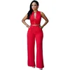 Summer Newest Sleeveless Belt Fashion Women Jumpsuit High Waist Wide Leg Rompers Office Ladies Workwear Bodycon Playsuits