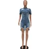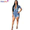 HAOOHU deep V-neck sexy short jean jumpsuit rompers Women blue hollow out bodycon playsuit Summer female club denim overalls