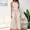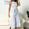 Summer Stripe Jumpsuit Women Sleeveless Elegant Sexy Bandage Jumpsuit Wide Long Pants Casual Work Romper Lady Office Overalls