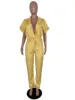 HAOOHU 2019 Women Jumpsuit short Sleeve Turn Down Collar Casual Playsuit Female Work Overalls Ladies Wide Leg Loose Romper CY117