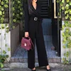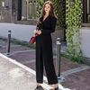 Office Lady Elegant Wide Leg Jumpsuits Women Autumn Solid Color Rompers Belted Waist Office Wear Playsuits Long Pants Overalls