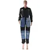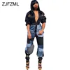 Printed Denim Patchwork Streetwear Bodysuit Women's Long Sleeve Zipper Front Slim Overall Plus Size Pockets Ladies Playsuits